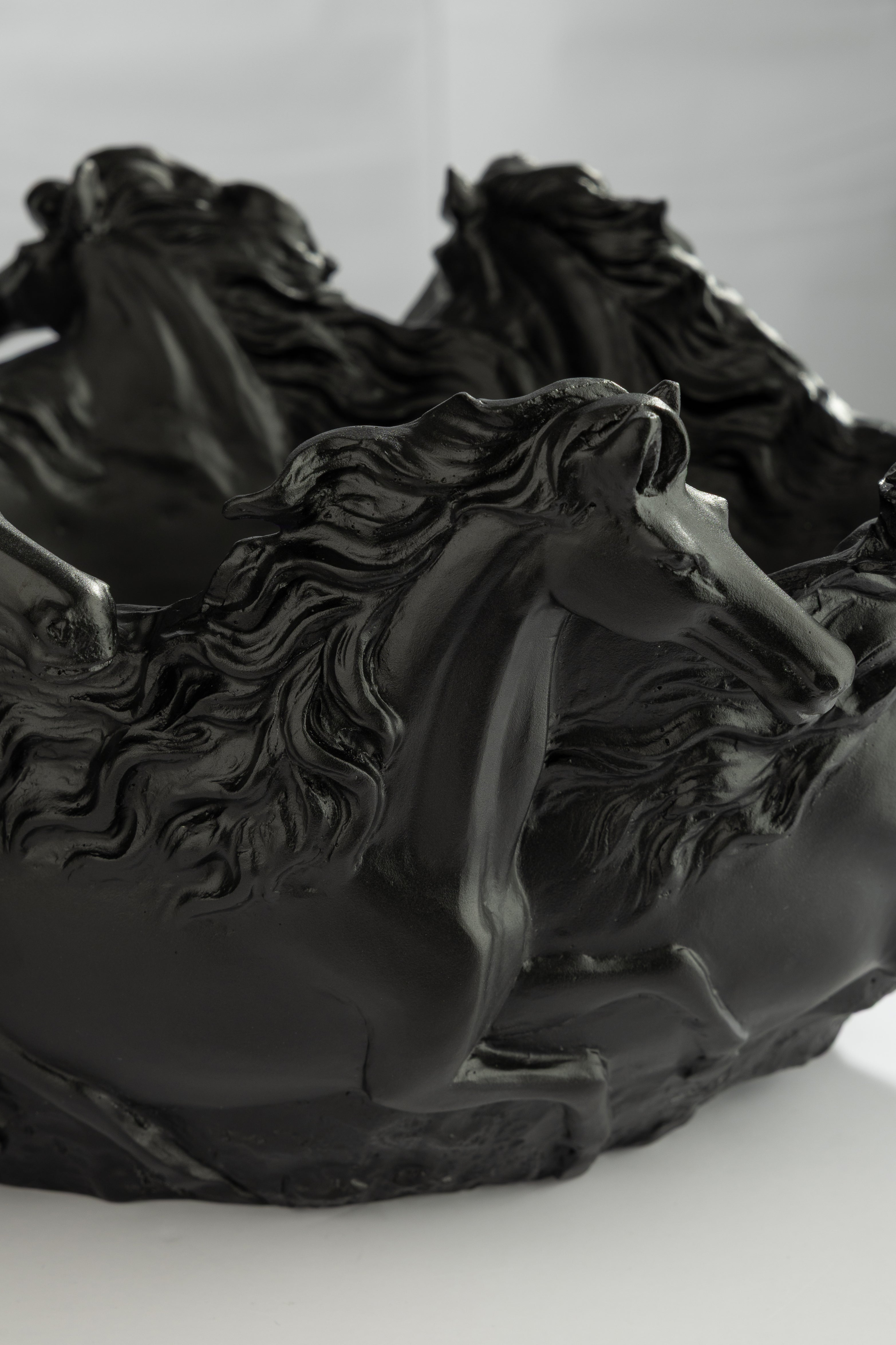 Corsa Alba captures the wild spirit of the herd in luminous form. Hand carved from solid white crystal, the galloping horses flow across the horizontal plane with anatomical precision, their frosted surfaces diffusing light into soft, ethereal glow. The substantial weight anchors the piece in permanence while the sense of motion suggests freedom without end. Made to order through weeks of intensive handwork, this is not mere tray. It is a centerpiece of pure energy, a functional sculpture that transforms any surface into a celebration of equine grace and crystalline light.